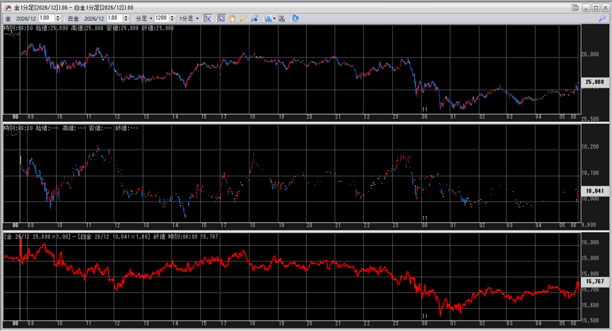 下:金白金鞘(金白金の価格差 = 金1グラムの価格 - 白金1グラムの価格)