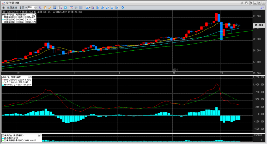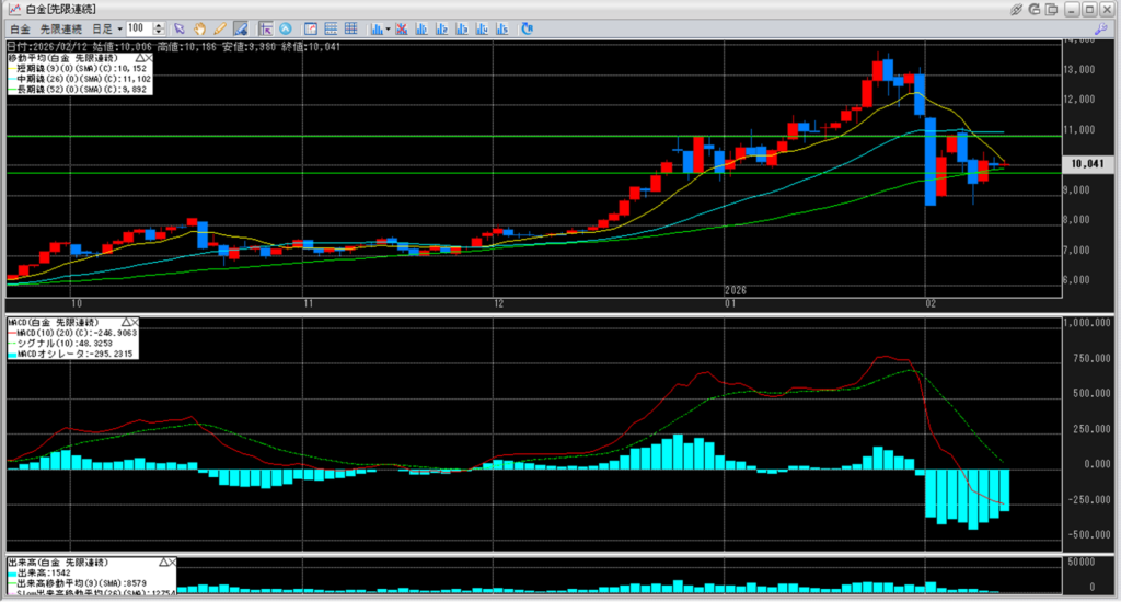 下記に金白金鞘の移動平均線のチャートを貼り付けています。