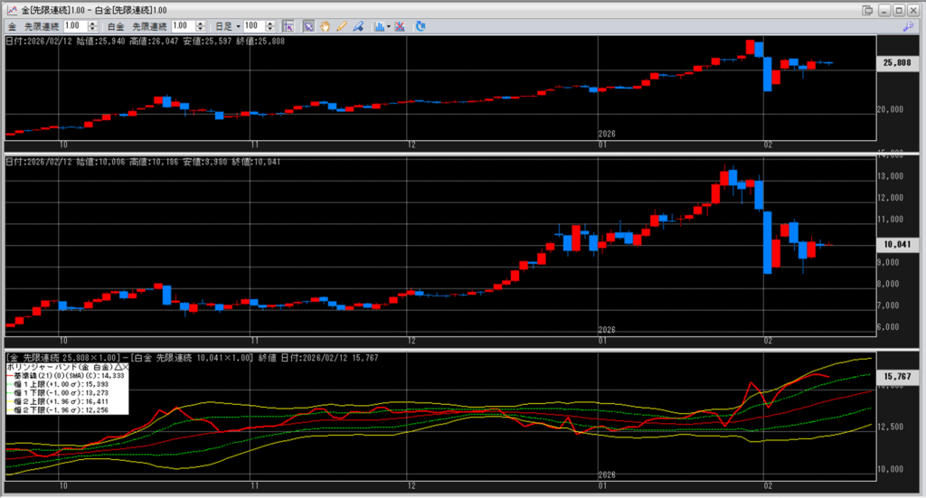 金白金の鞘をボリンジャーバンドで見ていきます。