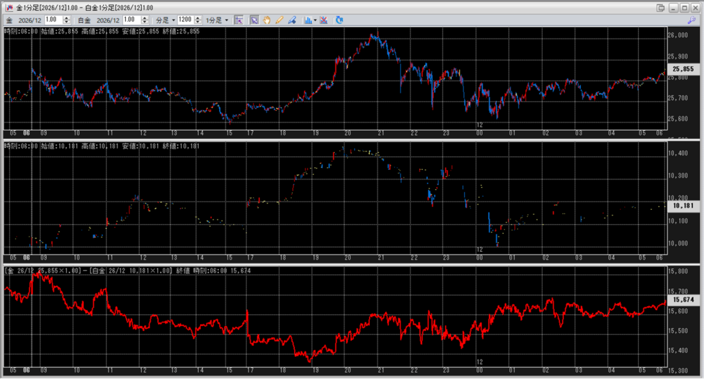 中:大阪取引所 白金 2026年12月限 1分足