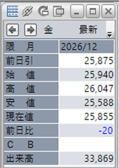 金価格は、6:00時点での終値は25,855円となっています。