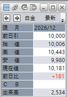 白金単体で見ると、2/10 15:45比で+181円となっております。