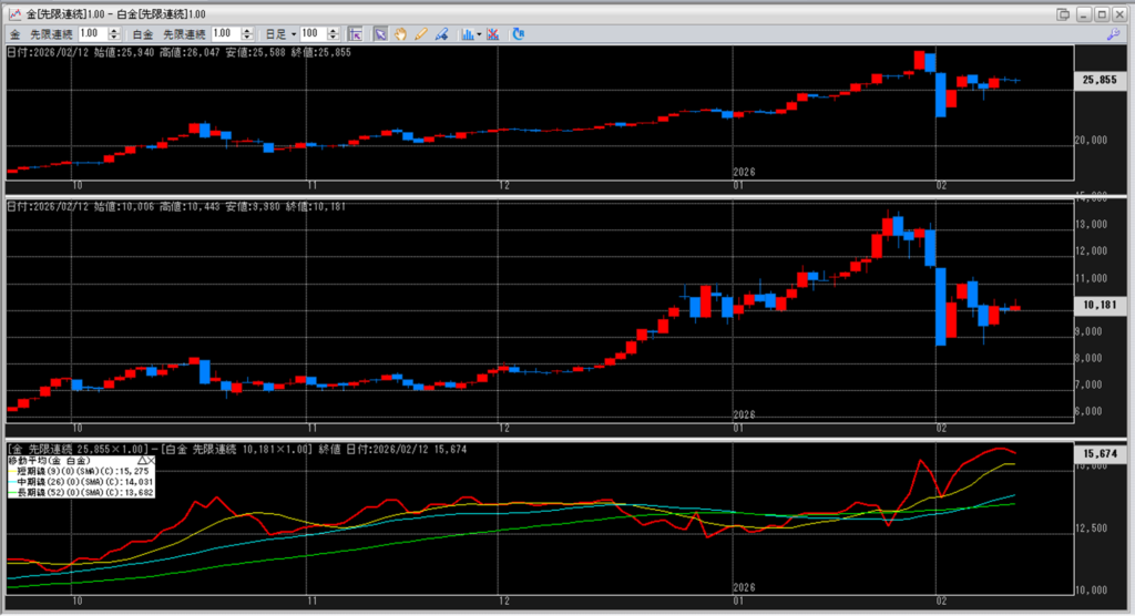下記に金白金鞘の移動平均線のチャートを貼り付けています。