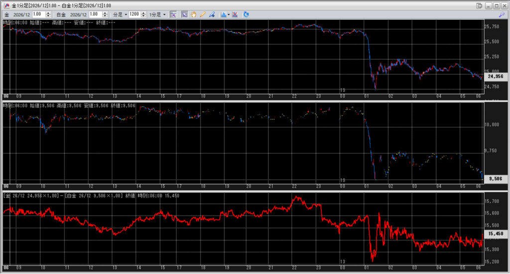 中:大阪取引所 白金 2026年12月限 1分足