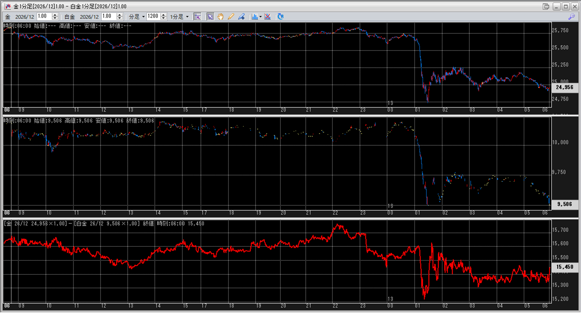 上:大阪取引所 金 2026年12月限 1分足