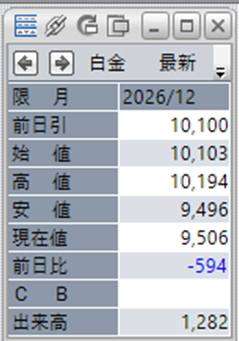 白金単体で見ると、前日比で-594円となっております。