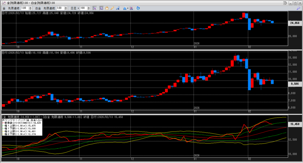 金白金の鞘をボリンジャーバンドで見ていきます。