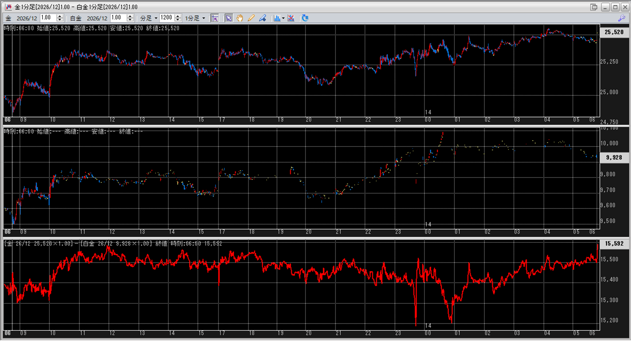 下:金白金鞘(金白金の価格差 = 金1グラムの価格 - 白金1グラムの価格)