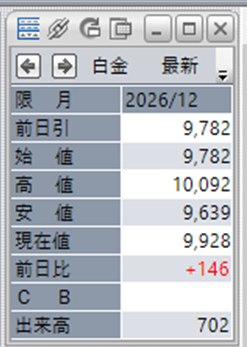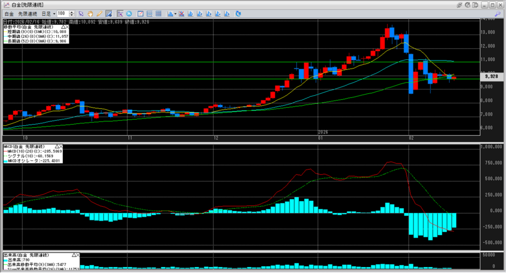 白金のチャートを見ると、約11,000円を割り込み続けています。