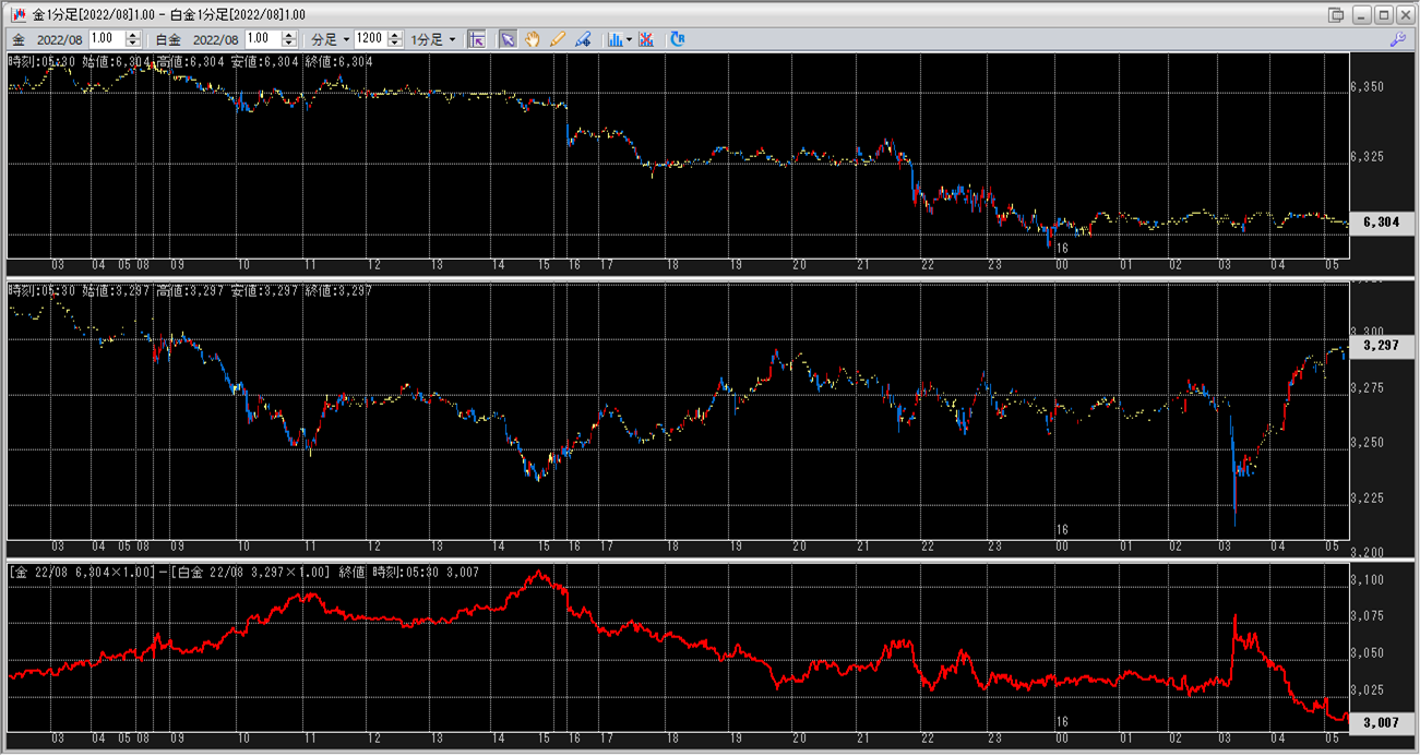 また、機会を見て鞘拡大の仕掛け金買い1枚-白金売り2枚を仕掛けていきたいと思います。