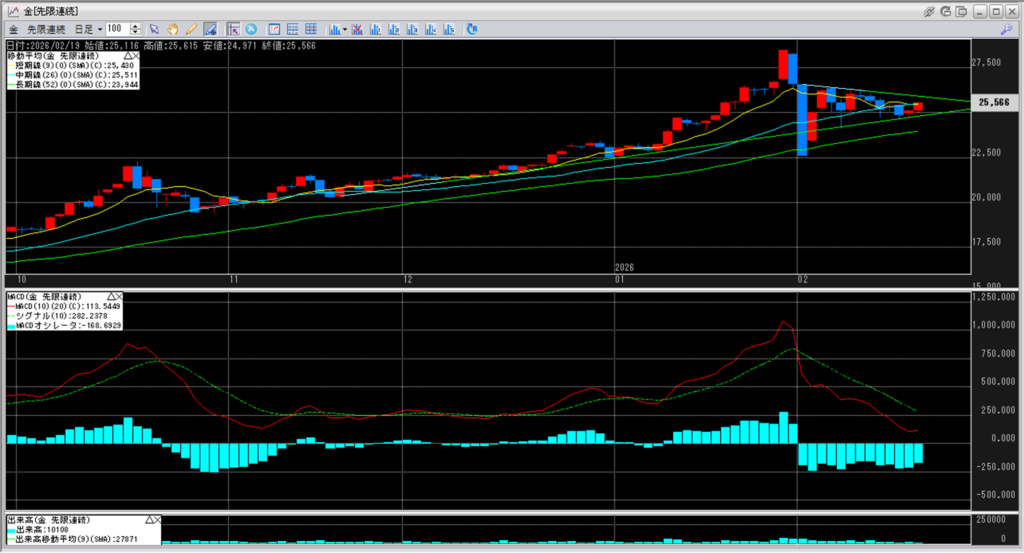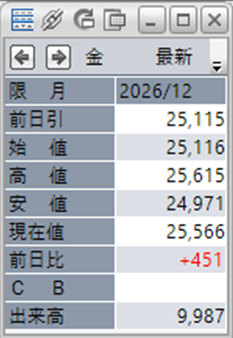 金価格は、6:00時点での終値は25,566円となっています。