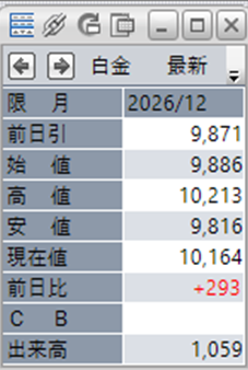 白金単体で見ると、前日比で+293円となっております。