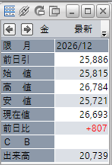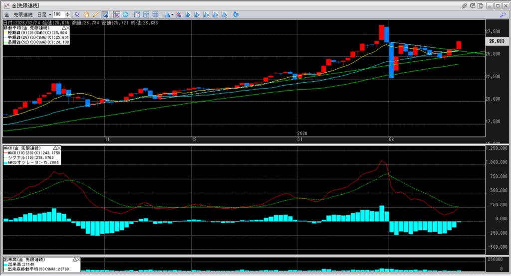 金単体で見ると、2/20 15:45比で+807円となっております。