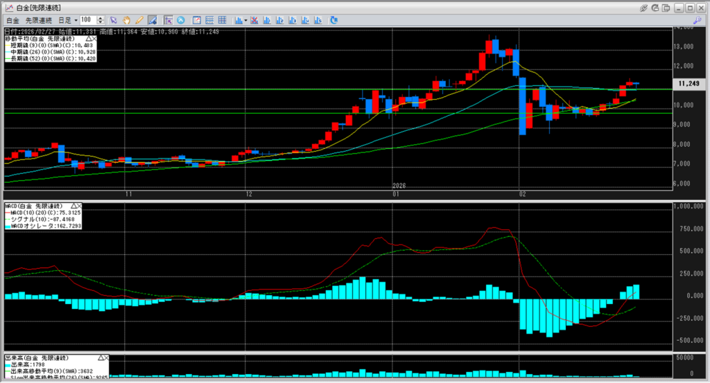 下記に金白金鞘の移動平均線のチャートを貼り付けています。