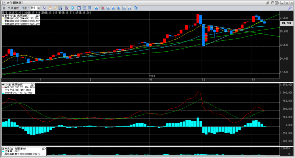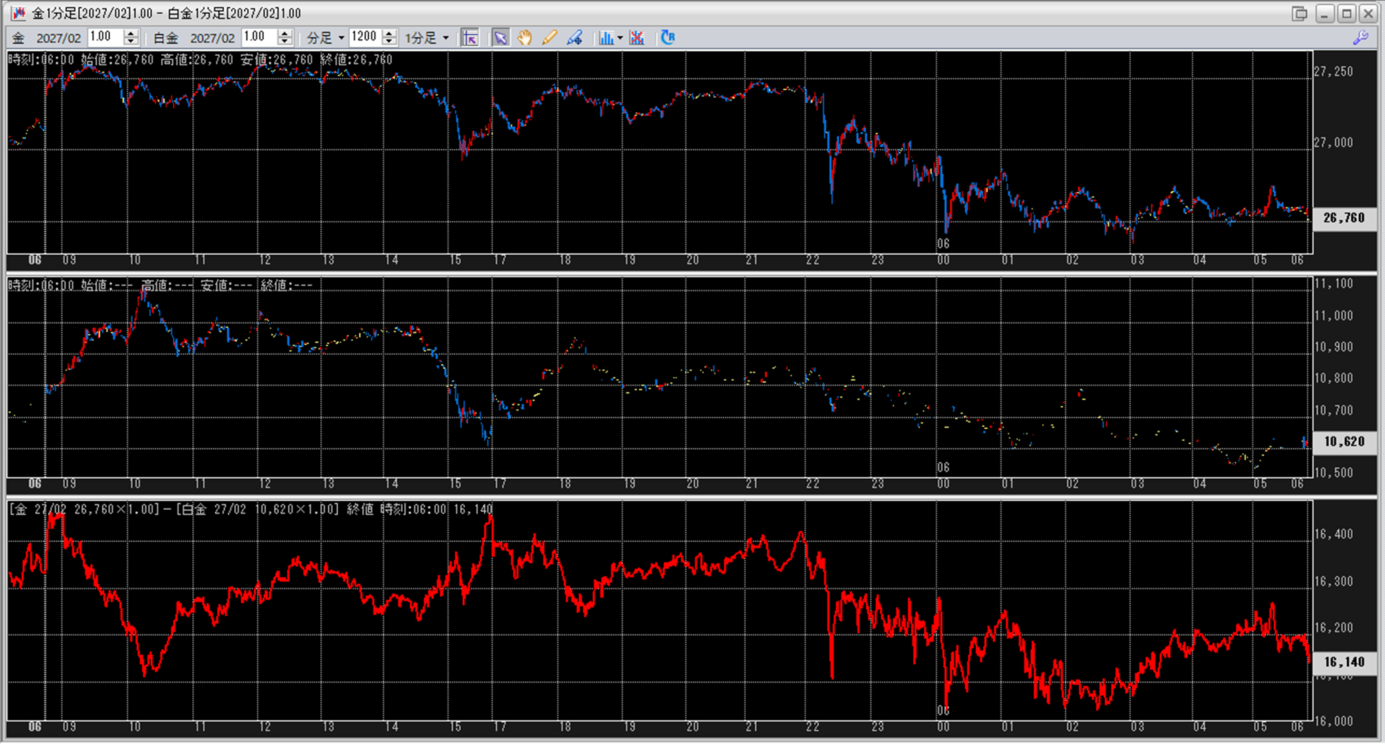上:大阪取引所 金 2027年2月限 1分足