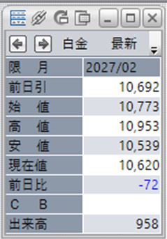 白金単体で見ると、前日比で-72円となっております。