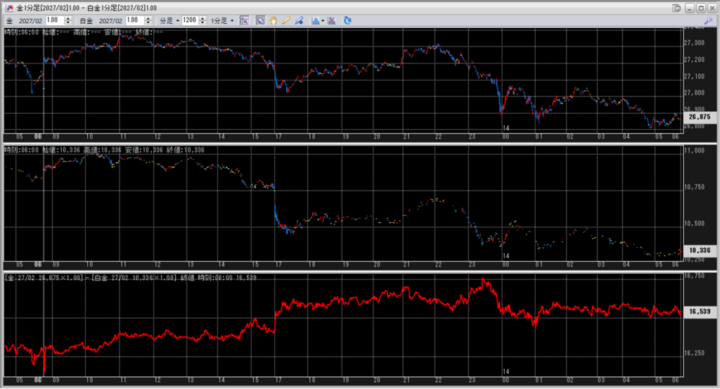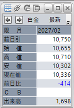中:大阪取引所 白金 2027年2月限 1分足
