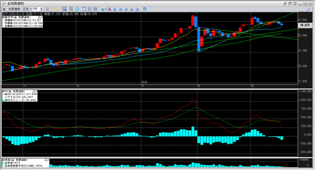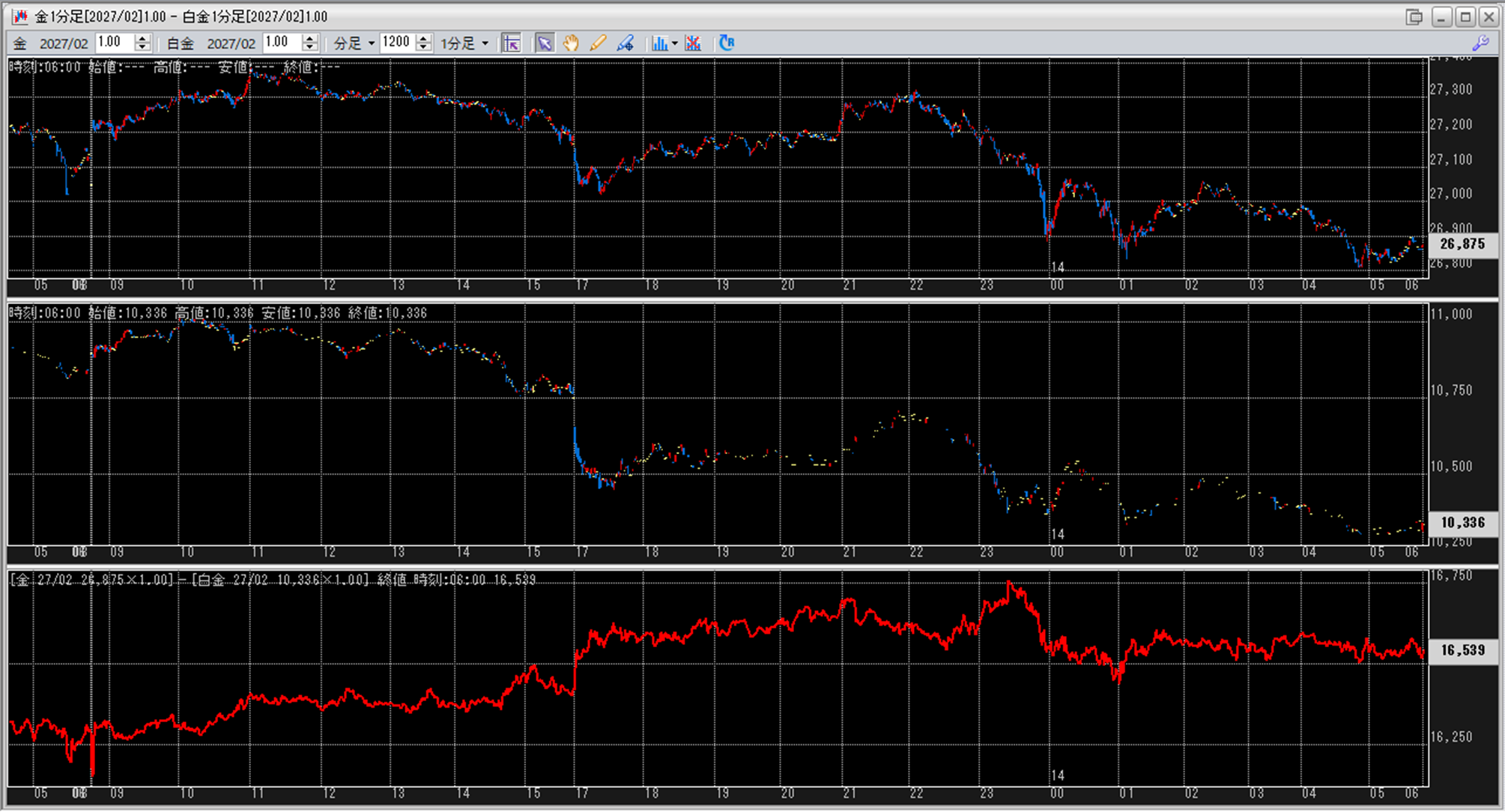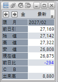 上:大阪取引所 金 2027年2月限 1分足