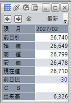 基準線である16,031円を割り込んだ15,964円で6:00の取引を終えています。