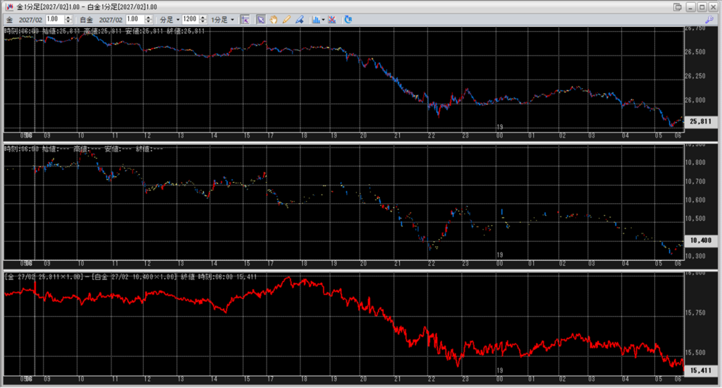 中:大阪取引所 白金 2027年2月限 1分足