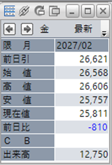 上:大阪取引所 金 2027年2月限 1分足