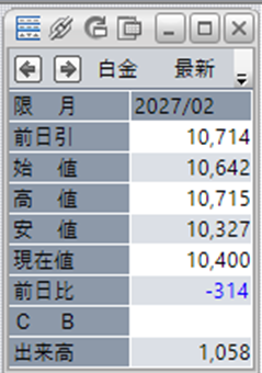 白金単体で見ると、前日比で-314円となっております。