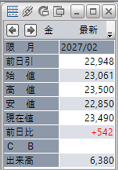 上:大阪取引所 金 2027年2月限 1分足