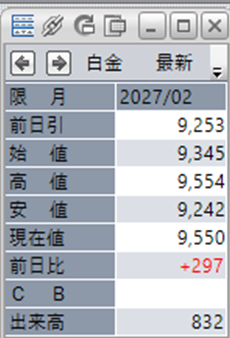 中:大阪取引所 白金 2027年2月限 1分足