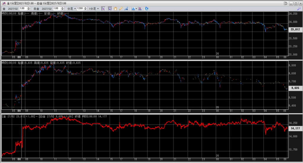 金白金鞘値動きのチャートを張り付けています。