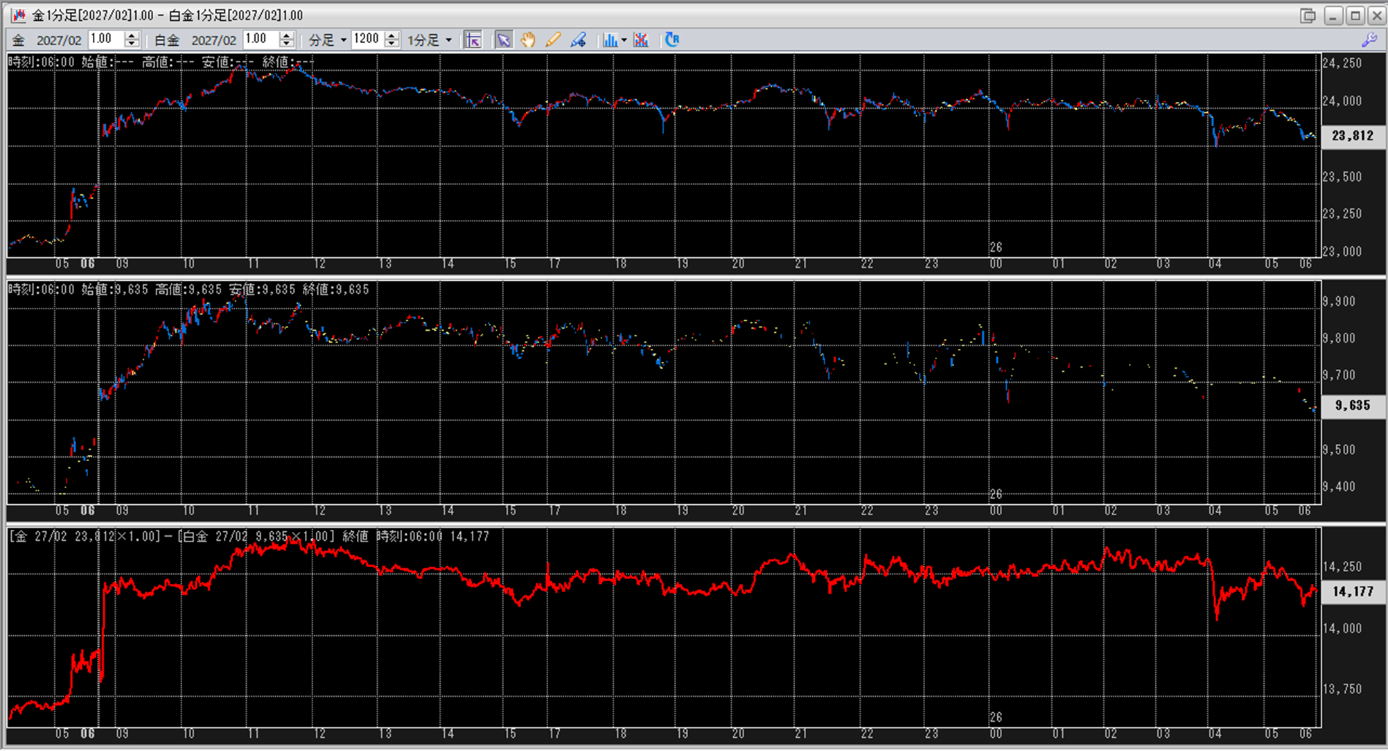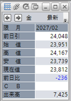 上:大阪取引所 金 2027年2月限 1分足
