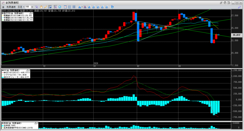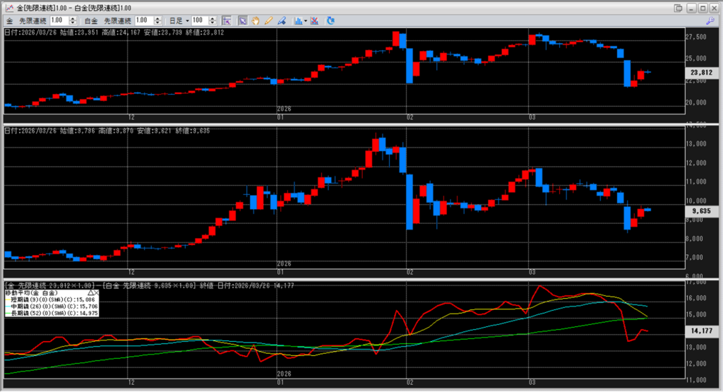 下記に金白金鞘の移動平均線のチャートを貼り付けています。