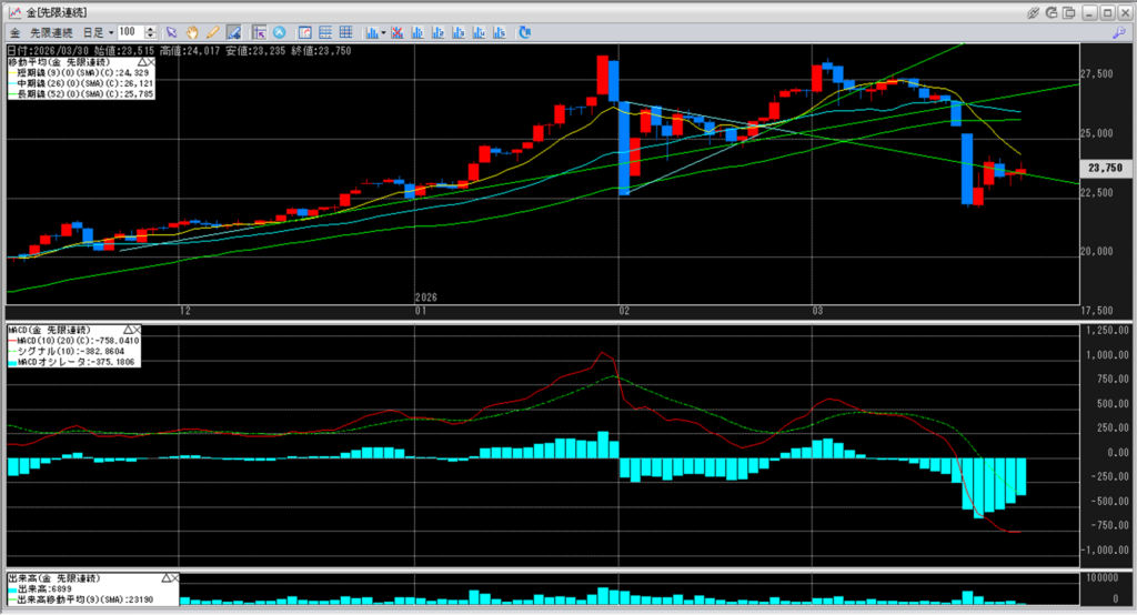 下記に金白金鞘の移動平均線のチャートを貼り付けています。
