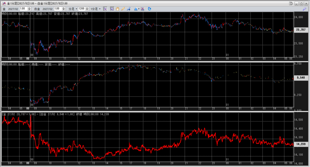 金白金鞘値動きのチャートを張り付けています。