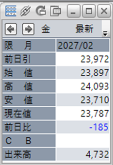 上:大阪取引所 金 2027年2月限 1分足