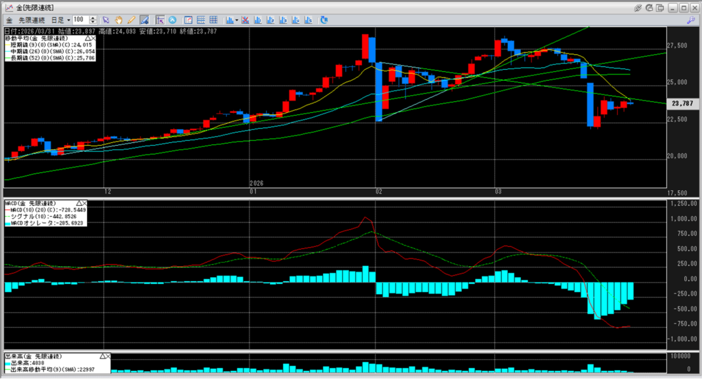 金価格は、6:00時点での終値は23,787円となっています。