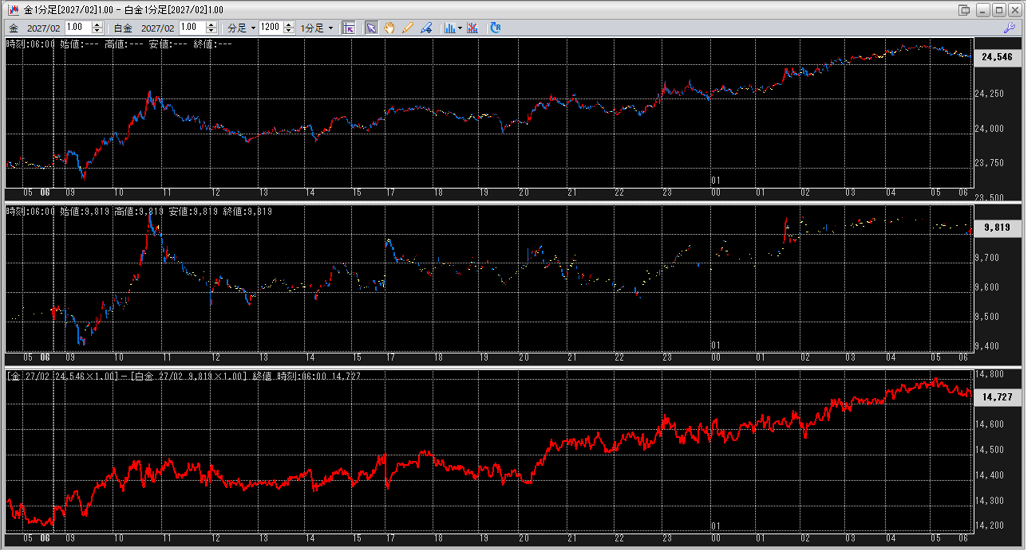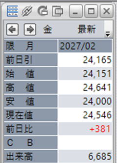 上:大阪取引所 金 2027年2月限 1分足