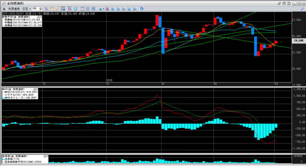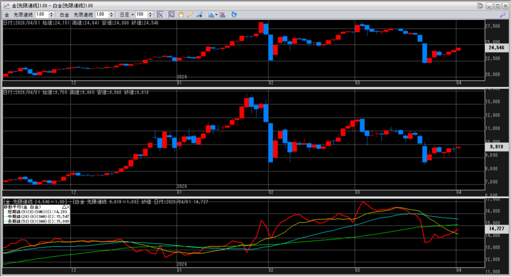 下記に金白金鞘の移動平均線のチャートを貼り付けています。