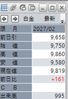 中:大阪取引所 白金 2027年2月限 1分足
