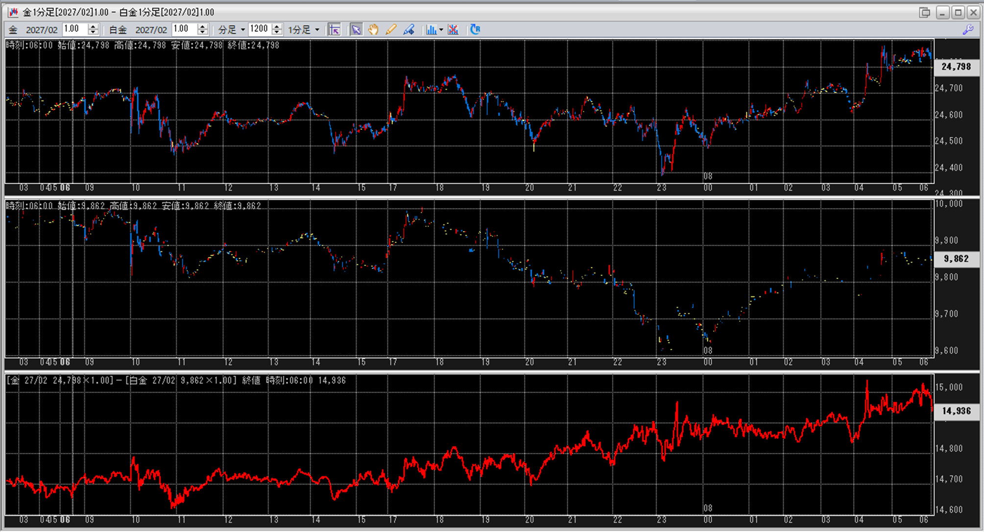 直近の3月下旬の金白金鞘の最小値からは少しずつ右肩上がりで