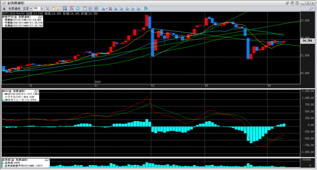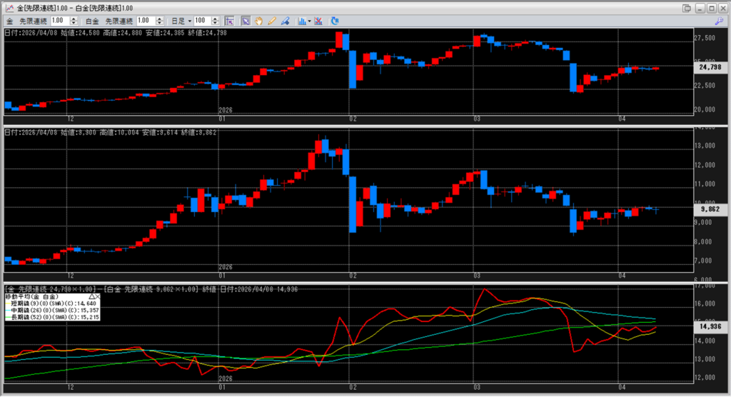 下記に金白金鞘の移動平均線のチャートを貼り付けています。