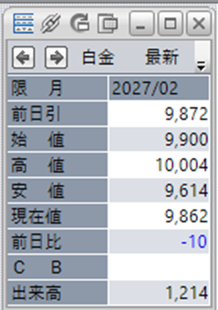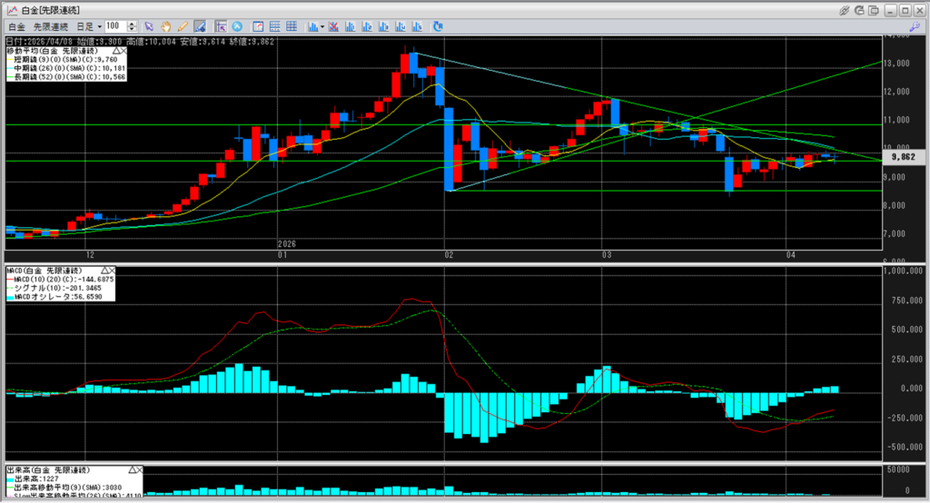 白金のチャートを見ると、11,000円を割り込み続けています。