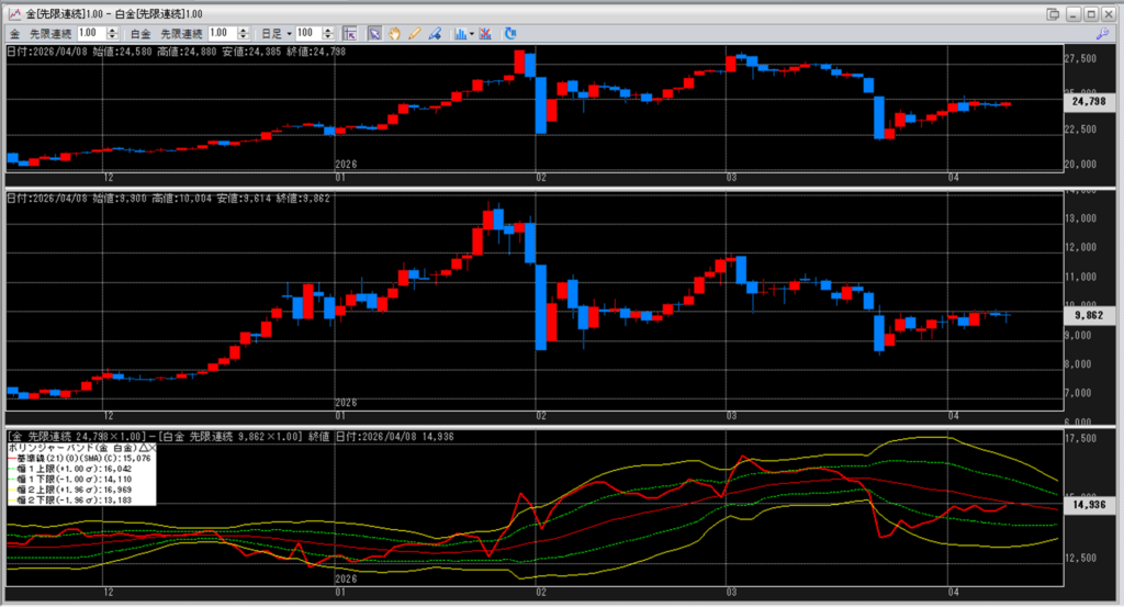 金白金の鞘をボリンジャーバンドで見ていきます。