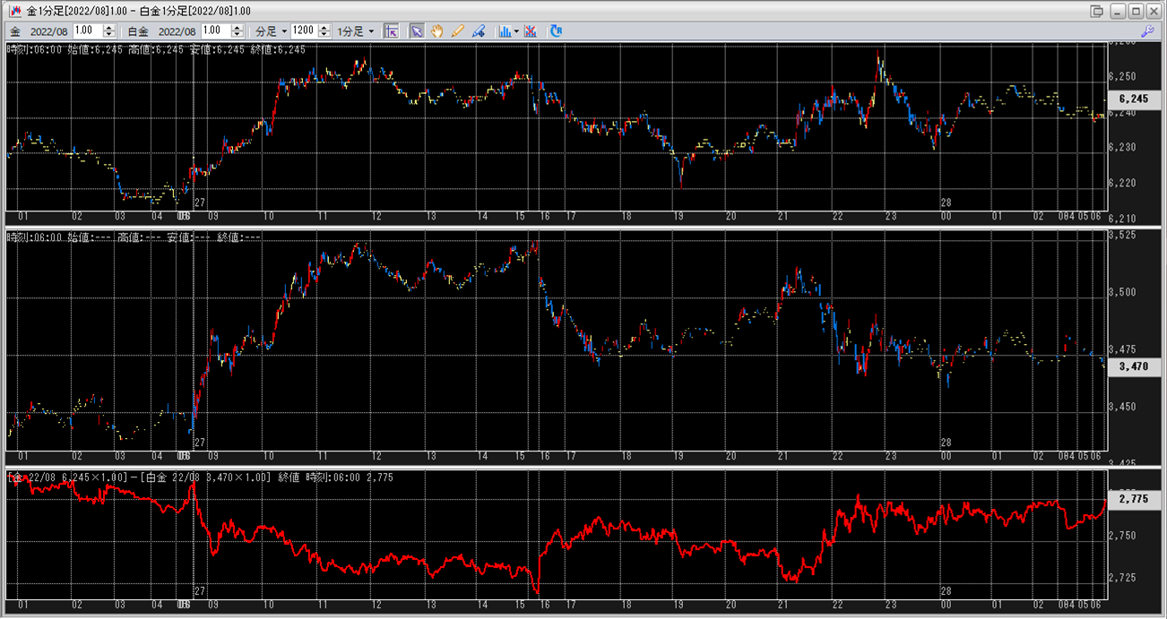 2021年9月27日8:45~9月28日6:00 金白金鞘値動きのチャートを張り付けています。