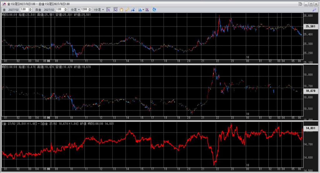 金白金鞘値動きのチャートを張り付けています。