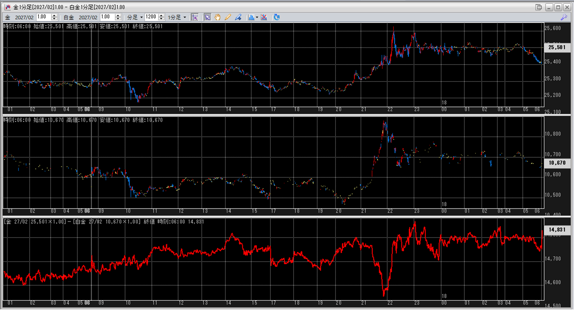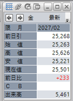 上:大阪取引所 金 2027年2月限 1分足