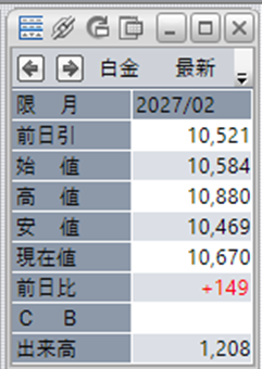 白金単体で見ると、前日比で+149円となっております。