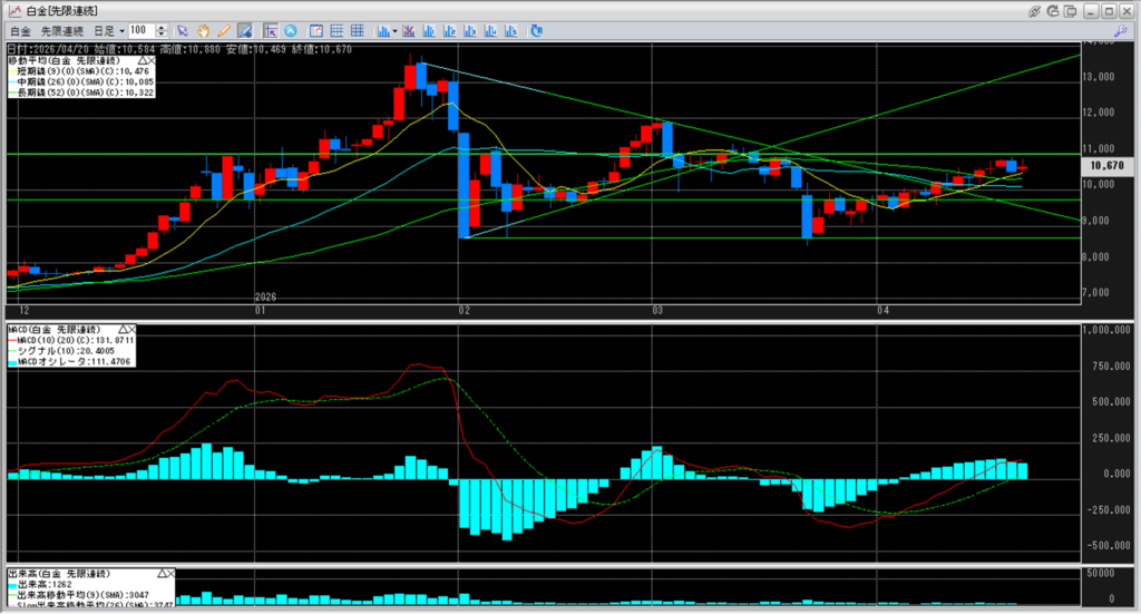 白金のチャートを見ると、