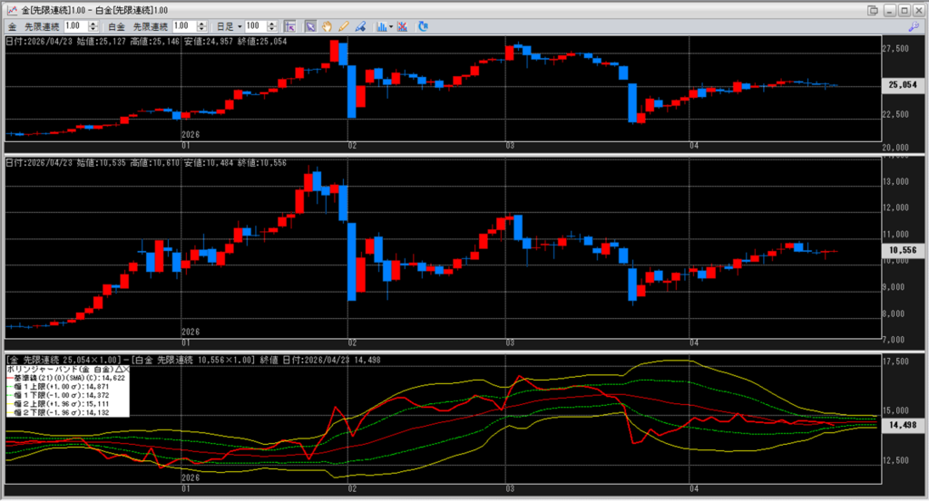 金白金の鞘をボリンジャーバンドで見ていきます。