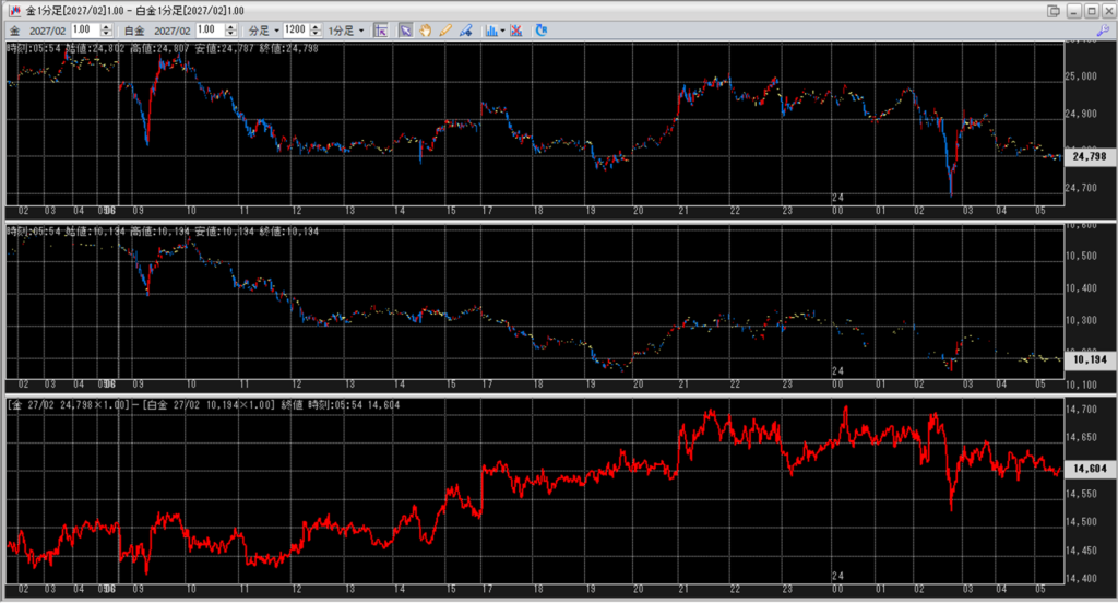 金白金鞘値動きのチャートを張り付けています。