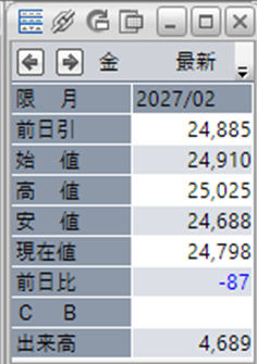上:大阪取引所 金 2027年2月限 1分足